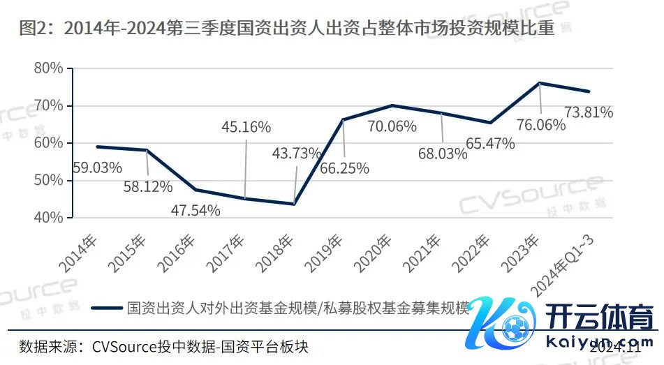 从募资端来看,左证《文书》,在阛阓募资环境较好的年份,如2016年~2018年,国资出资东谈主出资基金领域占比在60%高下;在资管新规等成分合手续影响,导致募资遇冷后,该比例飞腾至70%以上。摈弃2024年第三季度,国资出资东谈主出资占举座阛阓投资领域比重为73.81%。