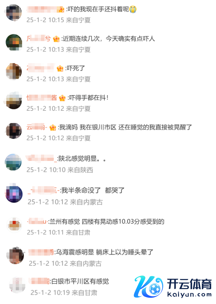 网友留言透露,宁夏、陕西、甘肃、内蒙古等多地震感澄澈。