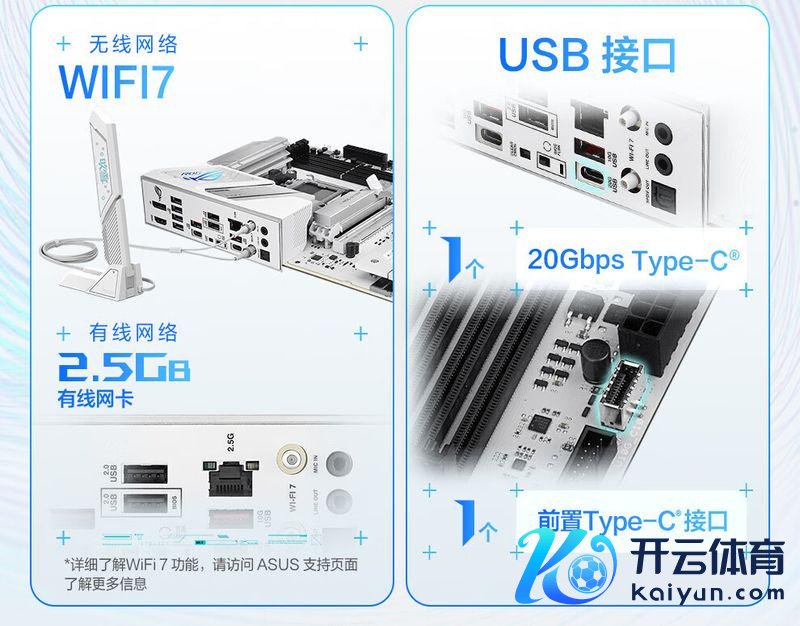 在端口方面,该主板配备 4 个 M.2 接口,1 个因循 PCIe 5.0,最高因循 64 GB/s 的速率,3 个因循 PCIe 4.0,配备 1 个 20Gbps 的 Type-C 端口。此外该主板因循 Wi-Fi 7 收罗、蓝牙 5.4 以及 2.5G 网口。