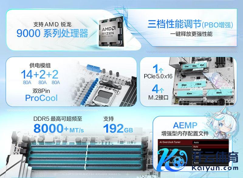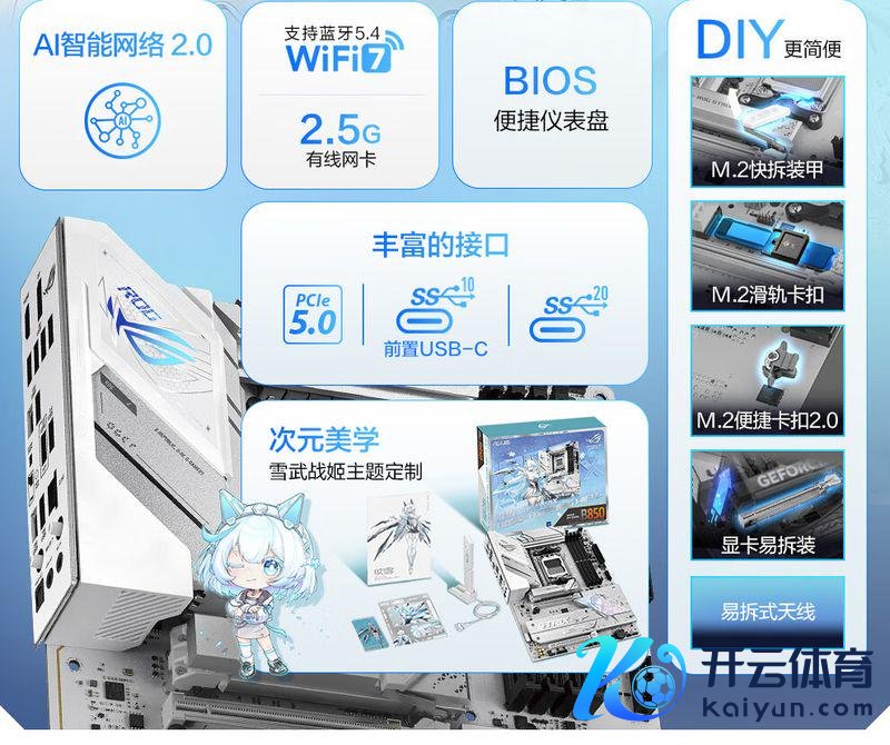华硕 ROG STRIX B850-A GAMING WIFI 吹雪主板接纳 14+2+2 供电模组,8 层 PCB 操办,最高因循 192GB DDR5 内存,可超频至 8000 MT/s 以上。