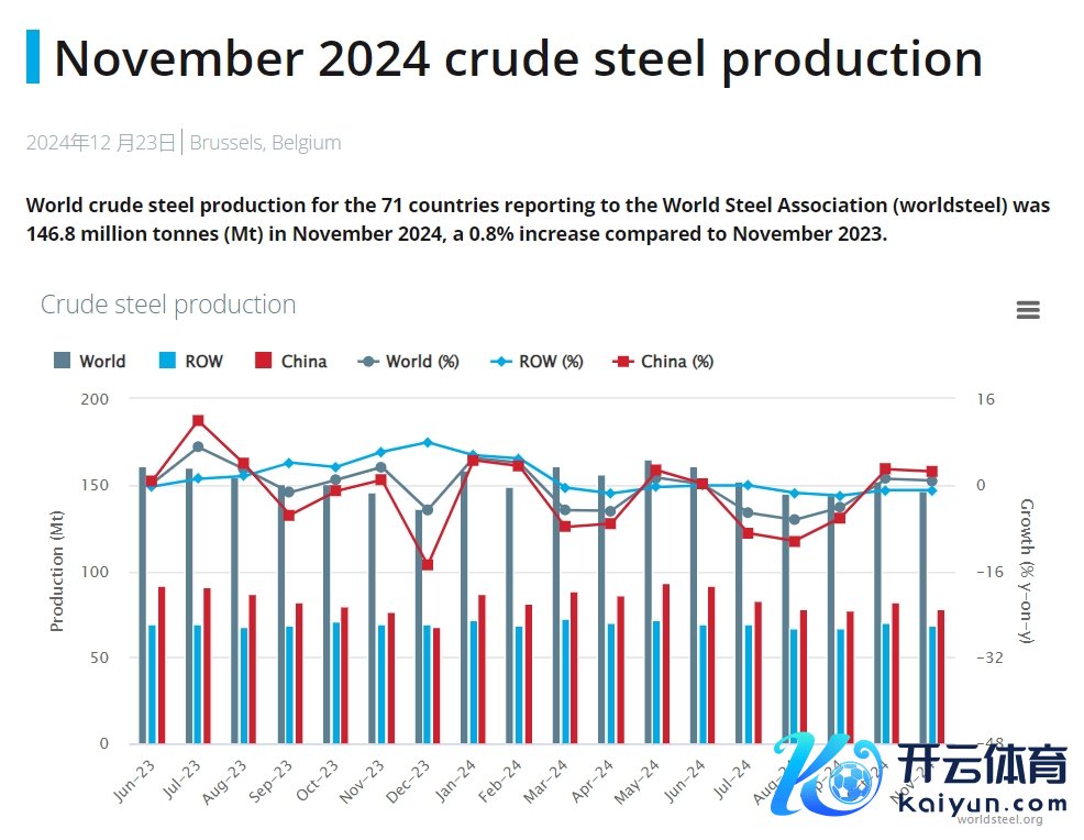宇宙钢铁协会:11月公共粗钢产量同比加多0.8%至1.468亿吨开云kaiyun体育宇宙钢铁协会:11月公共粗钢产量同比加多0.8%至1.468亿吨