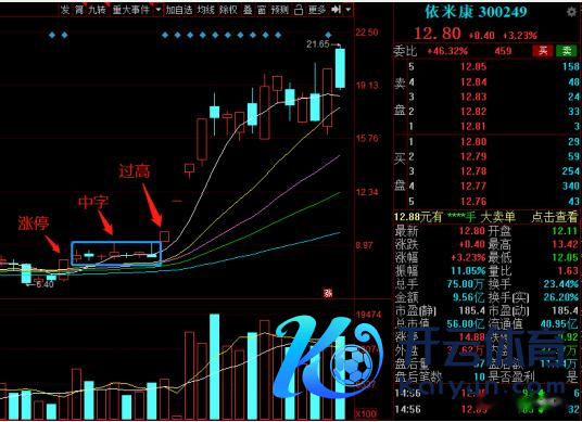 三、咱们再看一下依米康,依米康亦然在底部起初的时辰,拉了一个涨停,随后走了一转的中字,这种中字是不是亦然不错去匹配咱们的中字战法呢?亦然不错的,惟有在翌日的某一天,或者把这个中字的高点给冲破掉,那就代表分岐转一致,是以依米康也随后拉了四个涨停板。