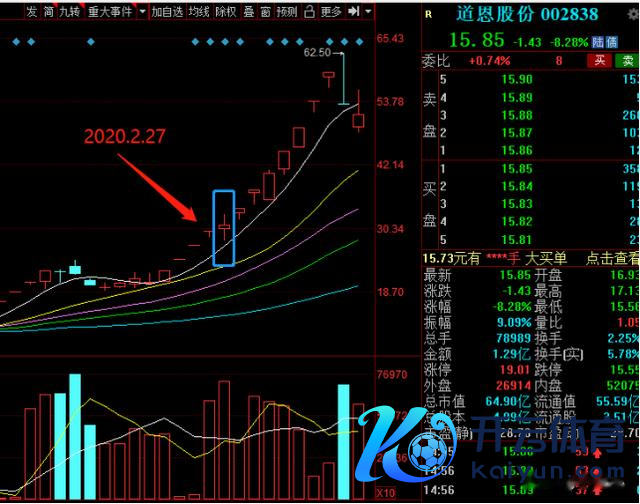 再看一下前几年的一只谈恩股份,在2020.2.27号收了一个中字,本日亦然烂板造成的,之后相连走了几个涨停。